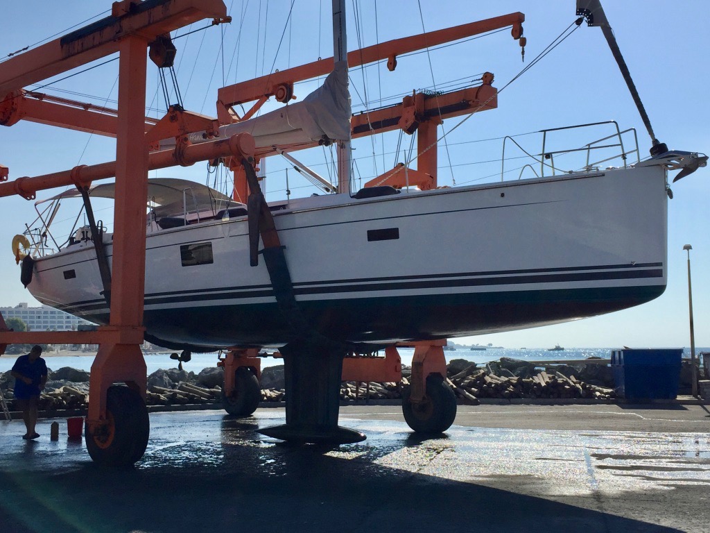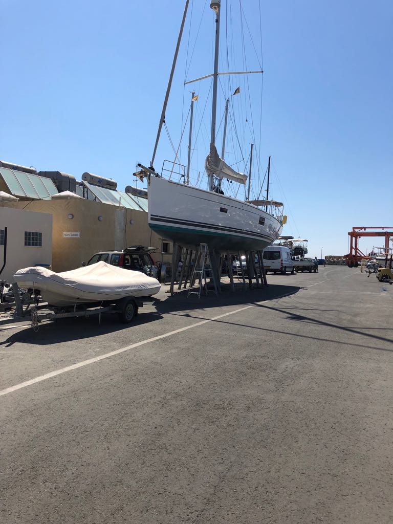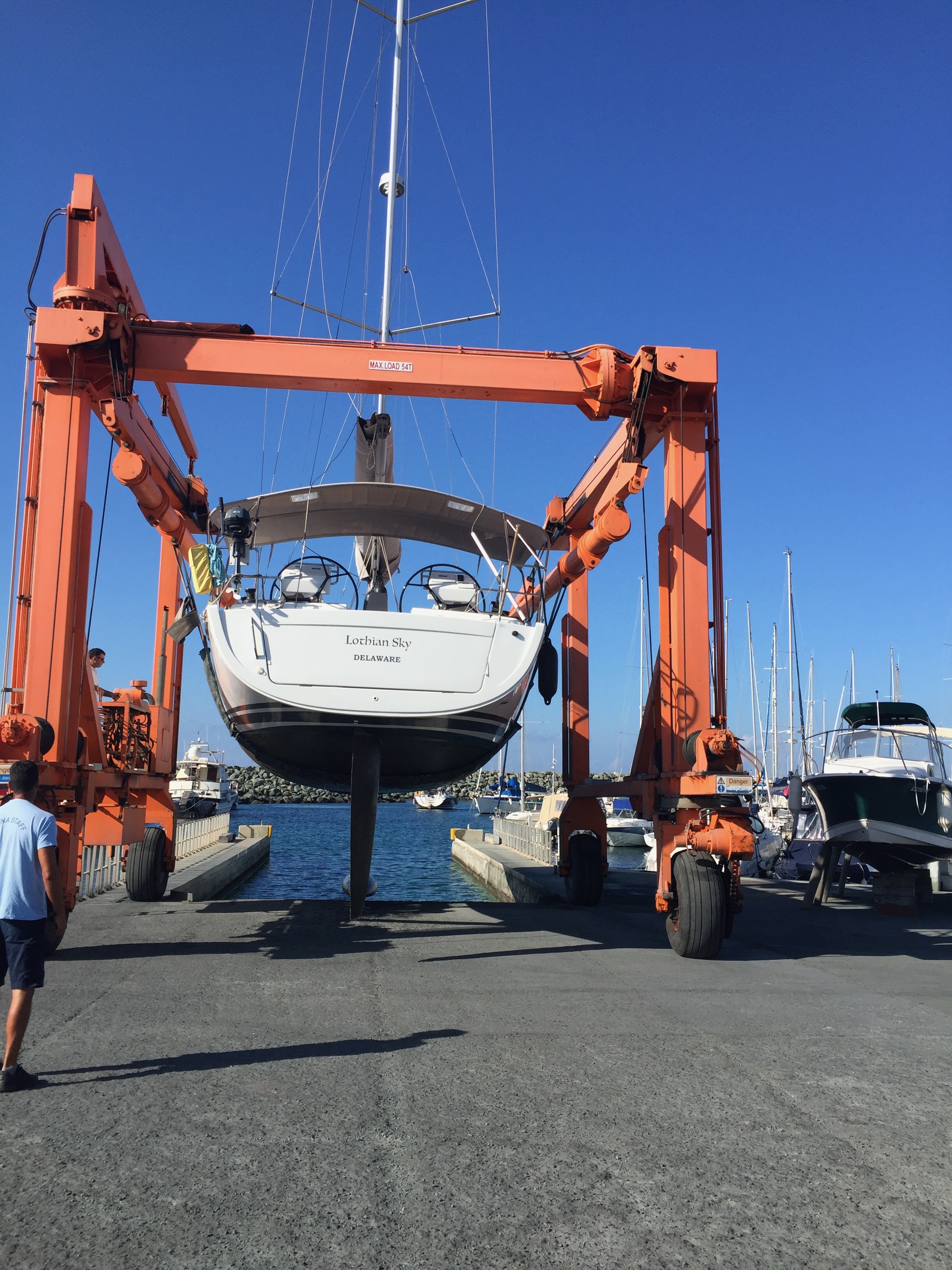 Lothian Sky had a full makeover for the tour. My good Cypriot friend Efti and I arranged for the Marina to haul her out, cleaned her bottom and give her a good waxing (top and bottom!).