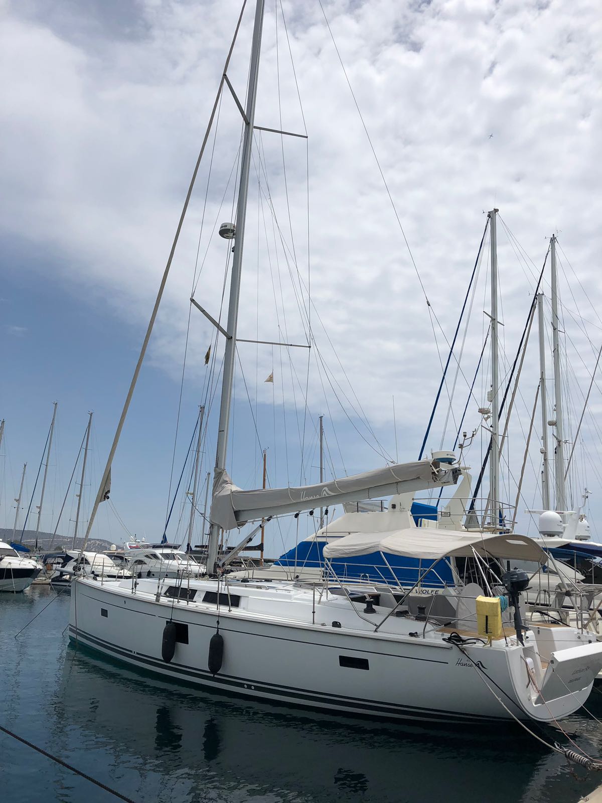 The ideal solution would have been to have a 130% genoa but the maximum that Hanse will do is 105% and, as Henry said, that would make little difference to the performance. Its all to do with the rigging. The shrouds are attached amidships at the gunnels which means that any upwind sail that passes the shrouds could not be fully sheeted in. Hanse don’t point that out when they market the yacht.