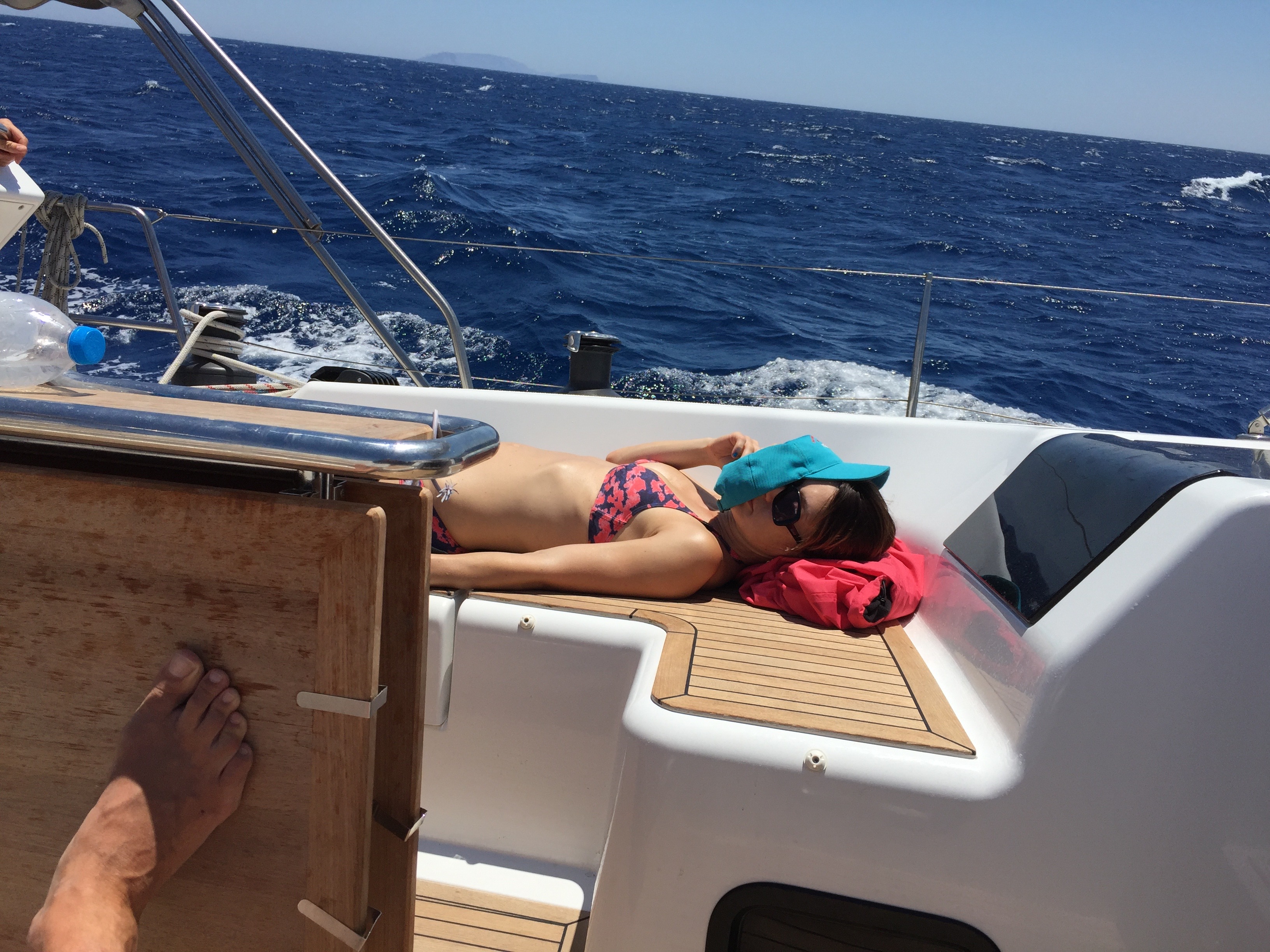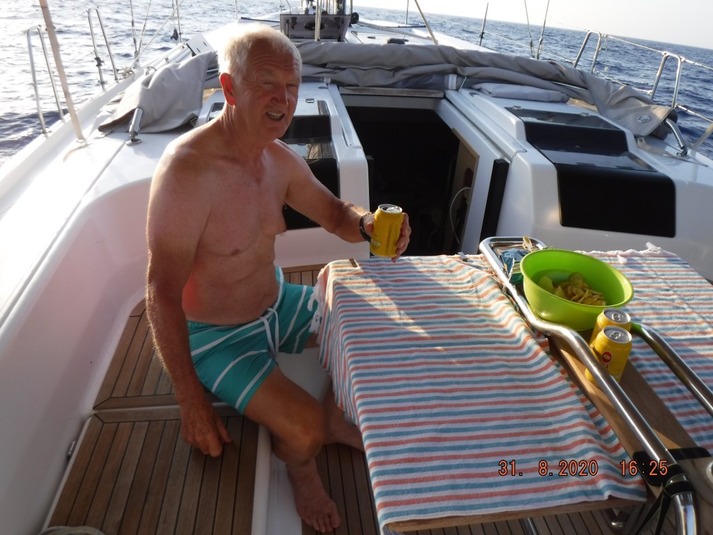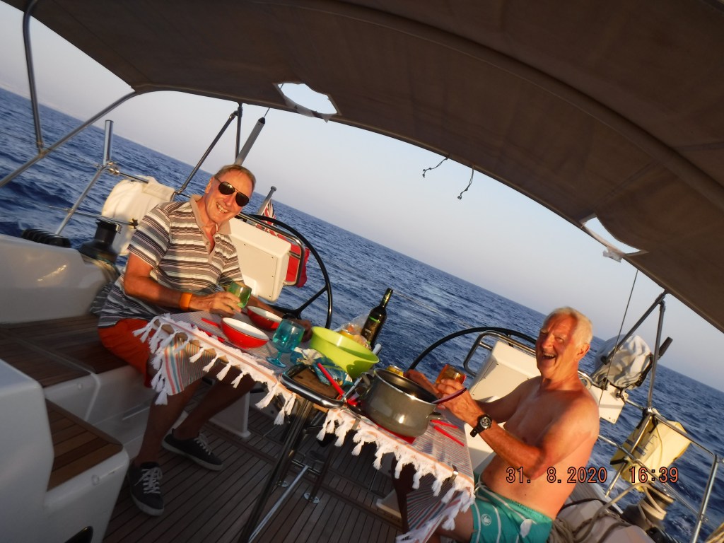 At 2100 our navigation lights were on and we were on a heading of 292 for Rhodes. I checked the keel bolts again before we started moving away from Pafos. All dry, all fine. Rhodes by Independence Day!