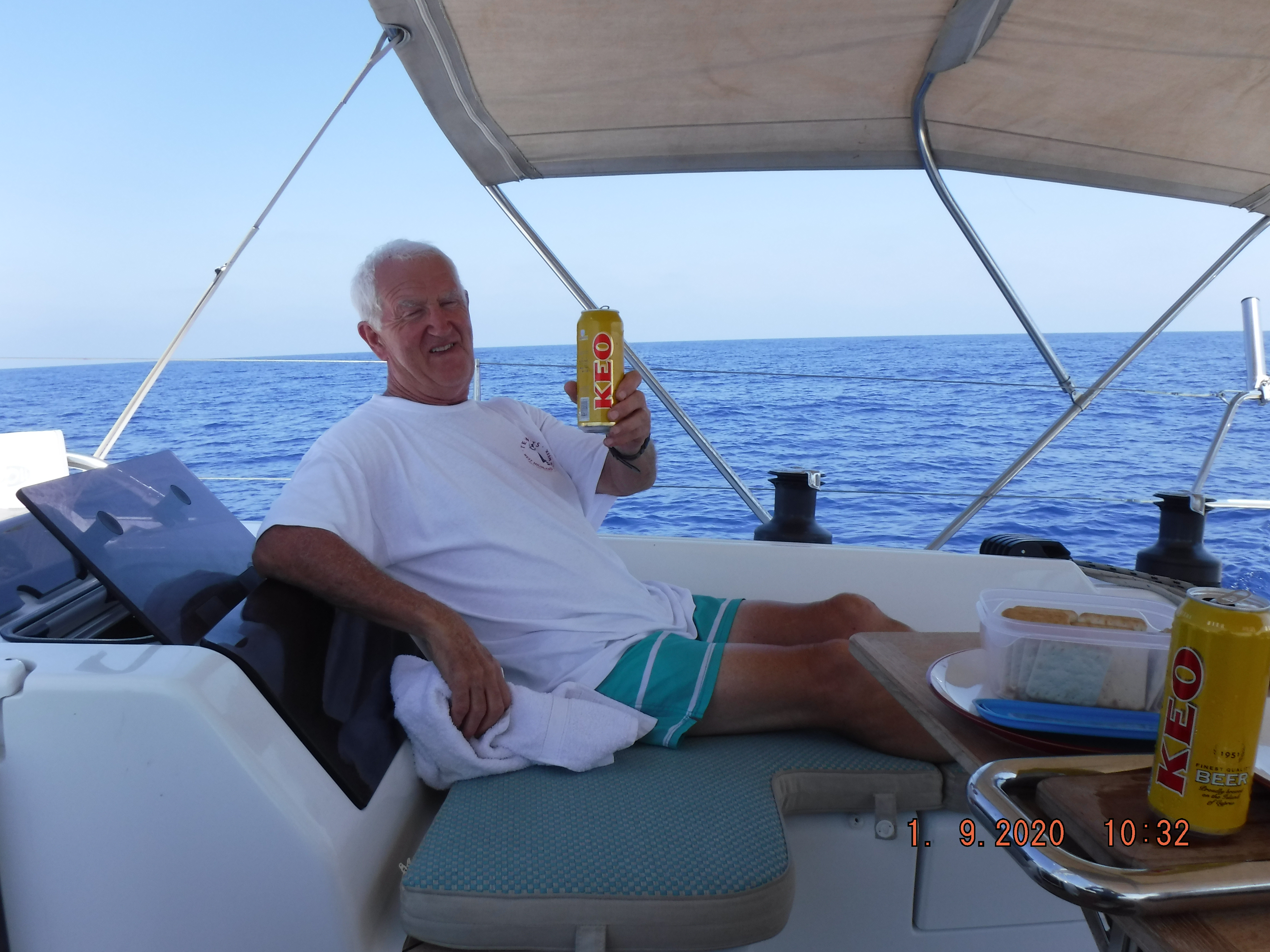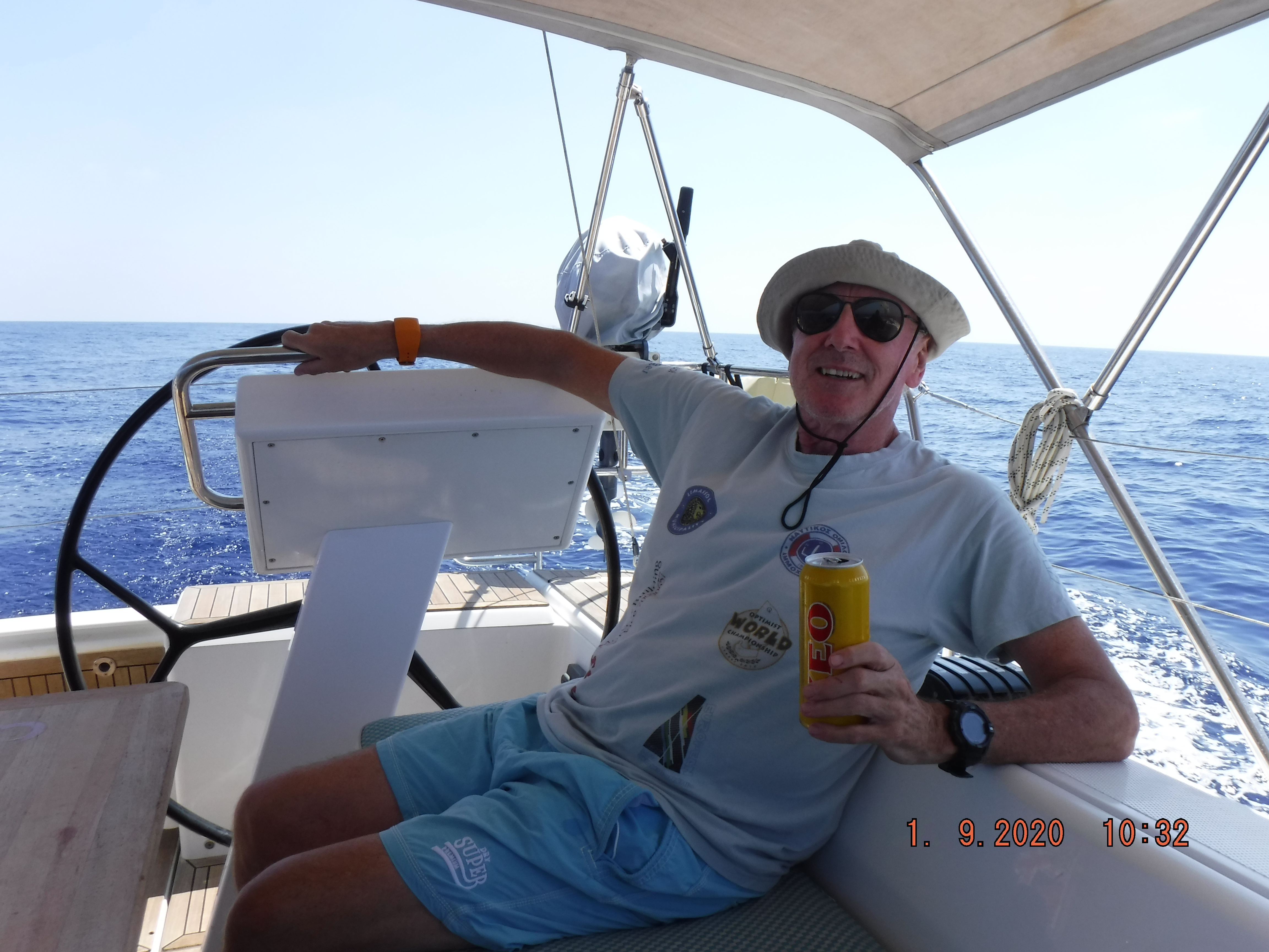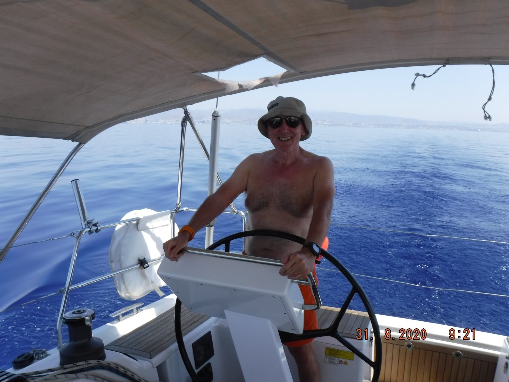 The plan is to do a circle of the Dodecanes and the Cyclades Islands of the Aegean throughout July, returning to Cyprus via Crete. We left Limassol on 2 July at 1200, heading for Rhodes, a passage that I estimated to be around 48 hours. Our initial crew consisted of daughter Ruth, brother-in-law Jon Over and his big buddy David Nicholas, and my friend Paul Leach who agreed to join us at the last minute.