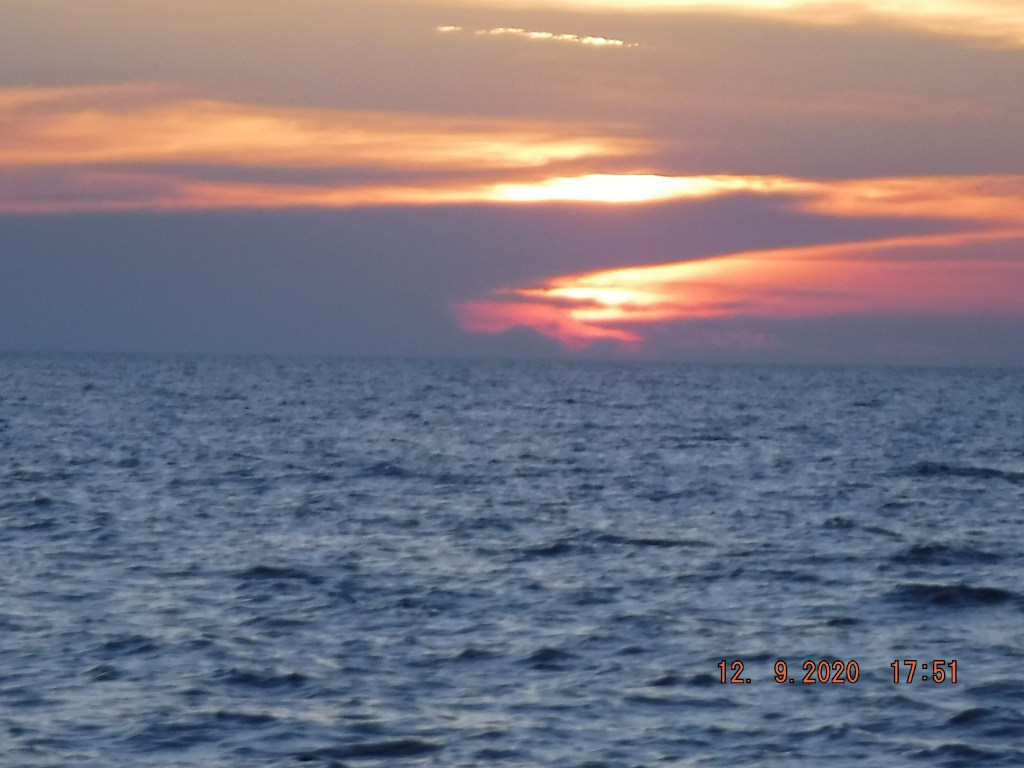 Some time during the first night, during the 0300 watch handover we encountered an unidentified floating object (UFO). We were busy trying to work out where all of these invisible fishing boats were when suddenly on our starboard side, about 20 meters off a white pole appeared. About two meters high and steady in the water. At first we thought it must be a marker laid by one of the fishing boats but on reflection we decided that was unlikely as the water depth was something in the region of 1000 meters.