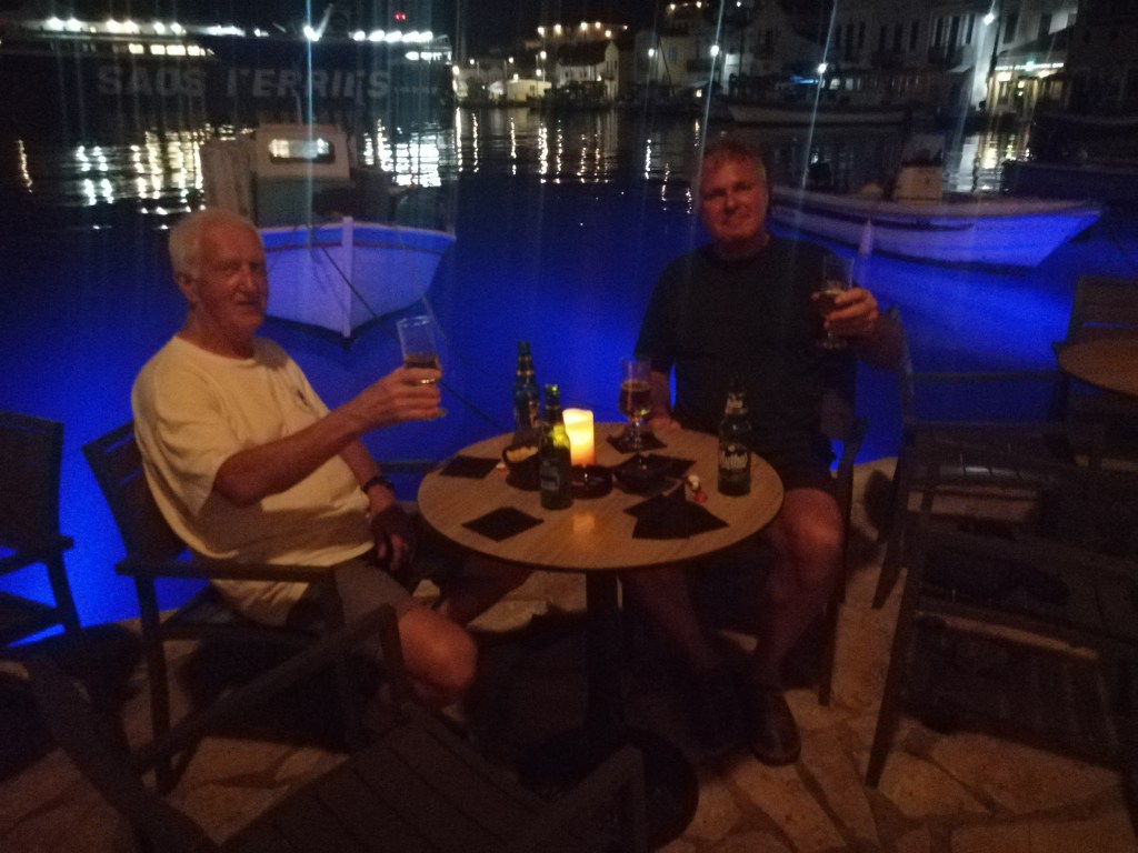 Wind speed 12 – 14 knots, good visibility and at 1200 on 4th July Ruth parked the boat in the new Rhodes Marina, almost without incident, and we were home and dry. Beer!! Happy American Independence Day!